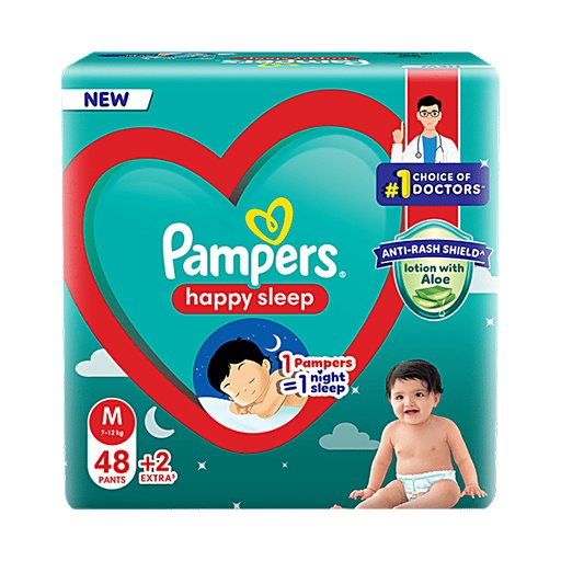/ Pampers Happy Sleep Pant Style Baby Diapers Medium, 7-12Kg – 50pcs